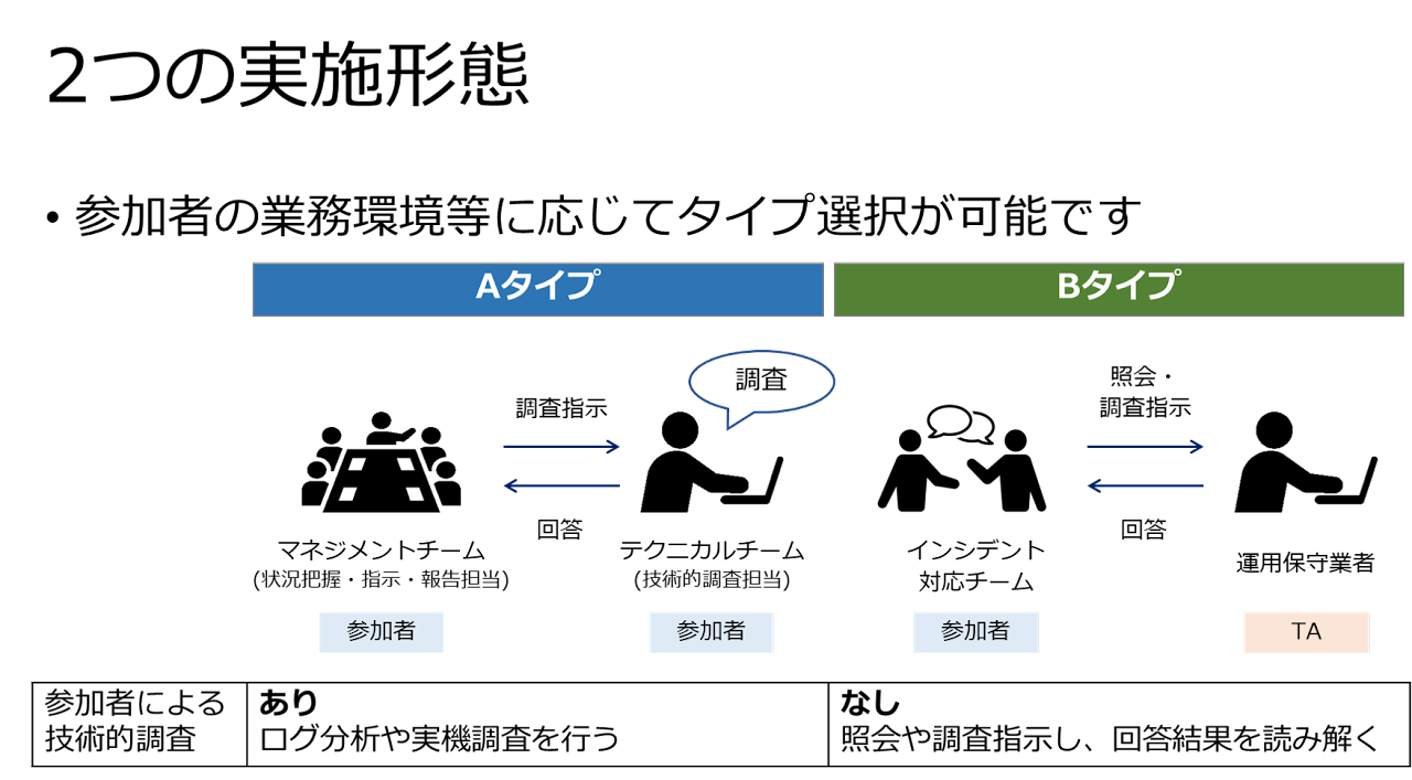 DX時代のビジネスに不可欠なレジリエンス(耐性)を鍛えるための、ロールプレイ形式のサイバーインシデント対応演習です。