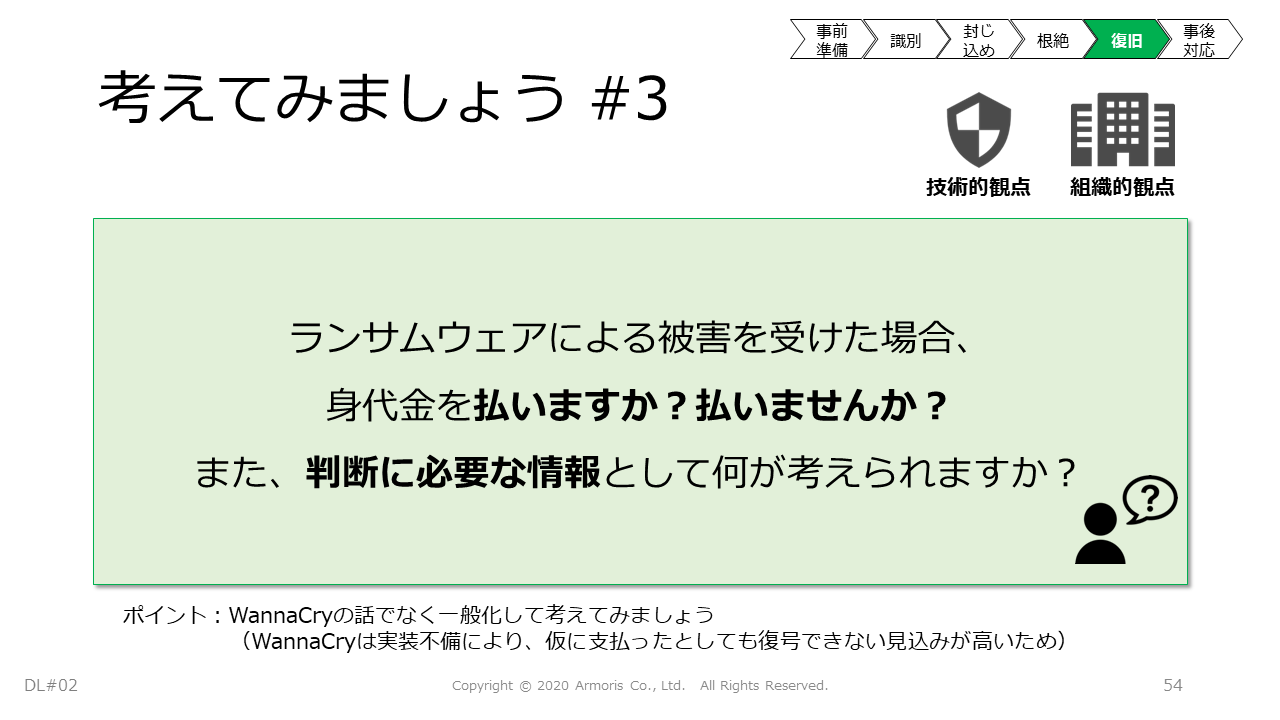 - WannaCry事案をテーマに脆弱性対応や自組織における対応策を考える